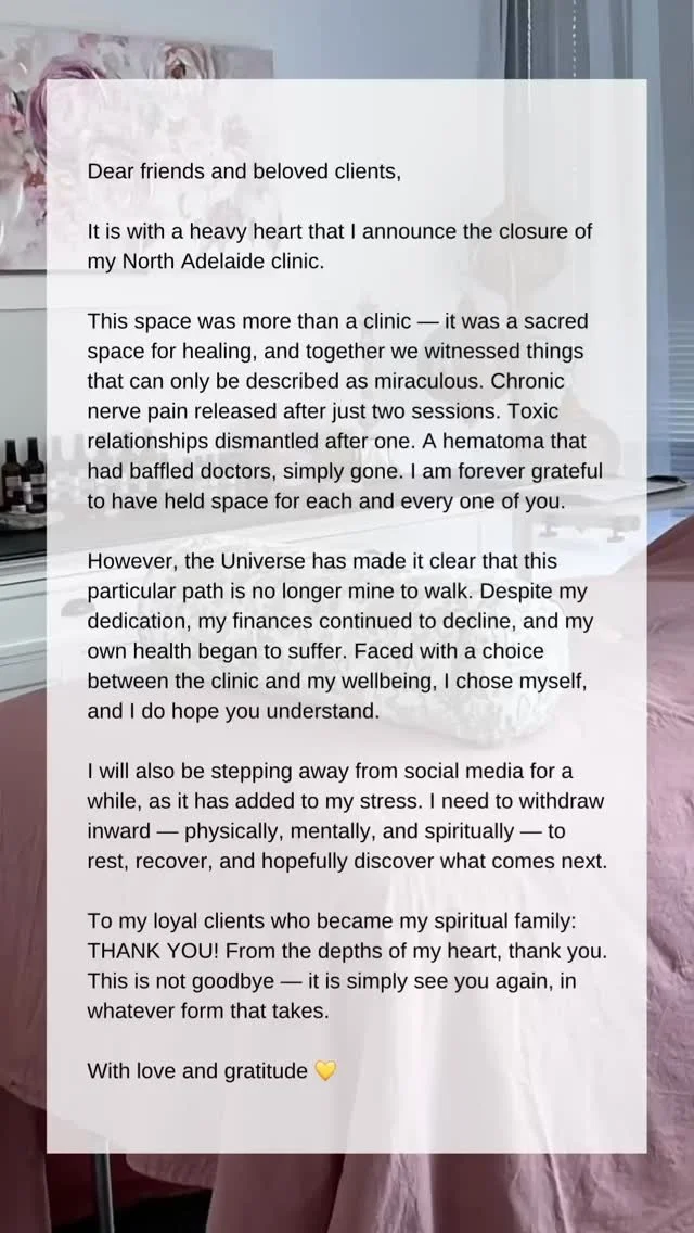 Yes! I offer both in-person sessions in North Adelaide and virtual Neuro-Emotional Kinesiology sessions for clients across South Australia, Australia-wide and around the world. Many techniques can be effectively delivered online.